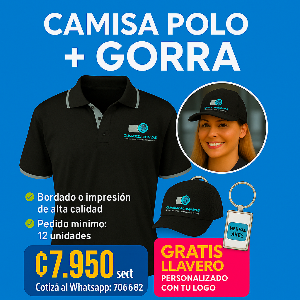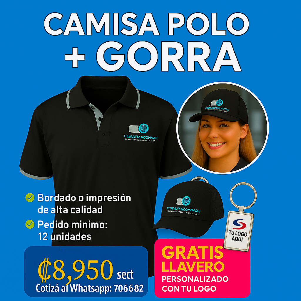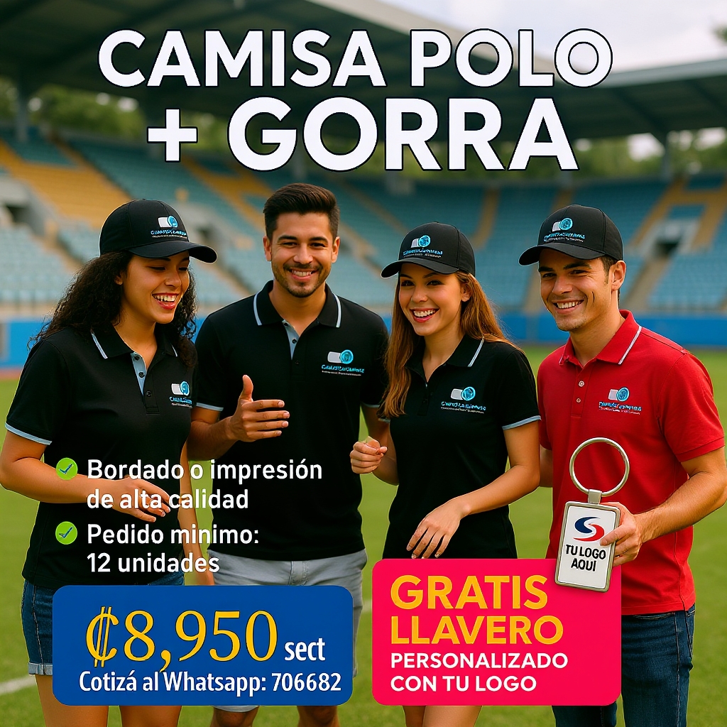 Combo: Camisa Polo + Gorra + Llavero Personalizado (Gratis)