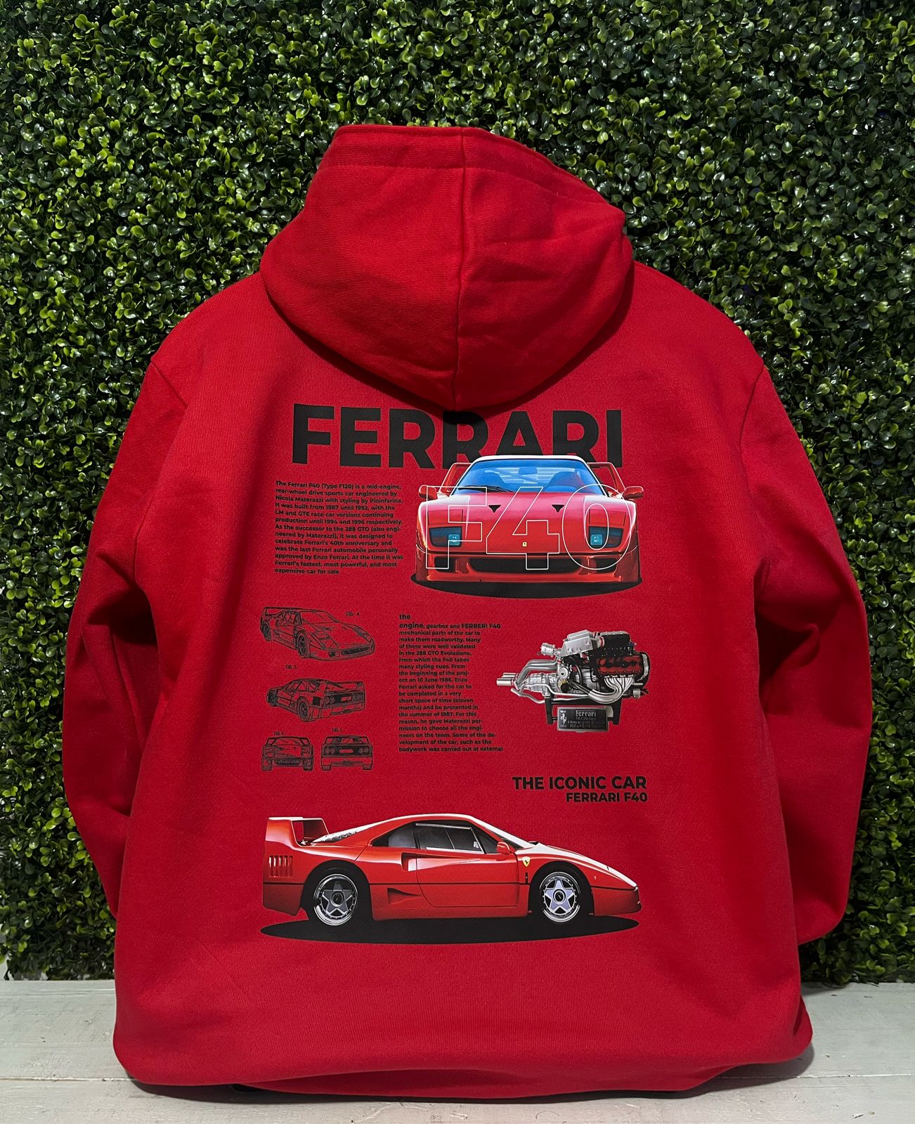 Hoodie gruesa tipo invierno, con acabado profesional, suave y resistente. Perfecta para fanáticos de Ferrari, la Fórmula 1 y el estilo automotriz de alto rendimiento.