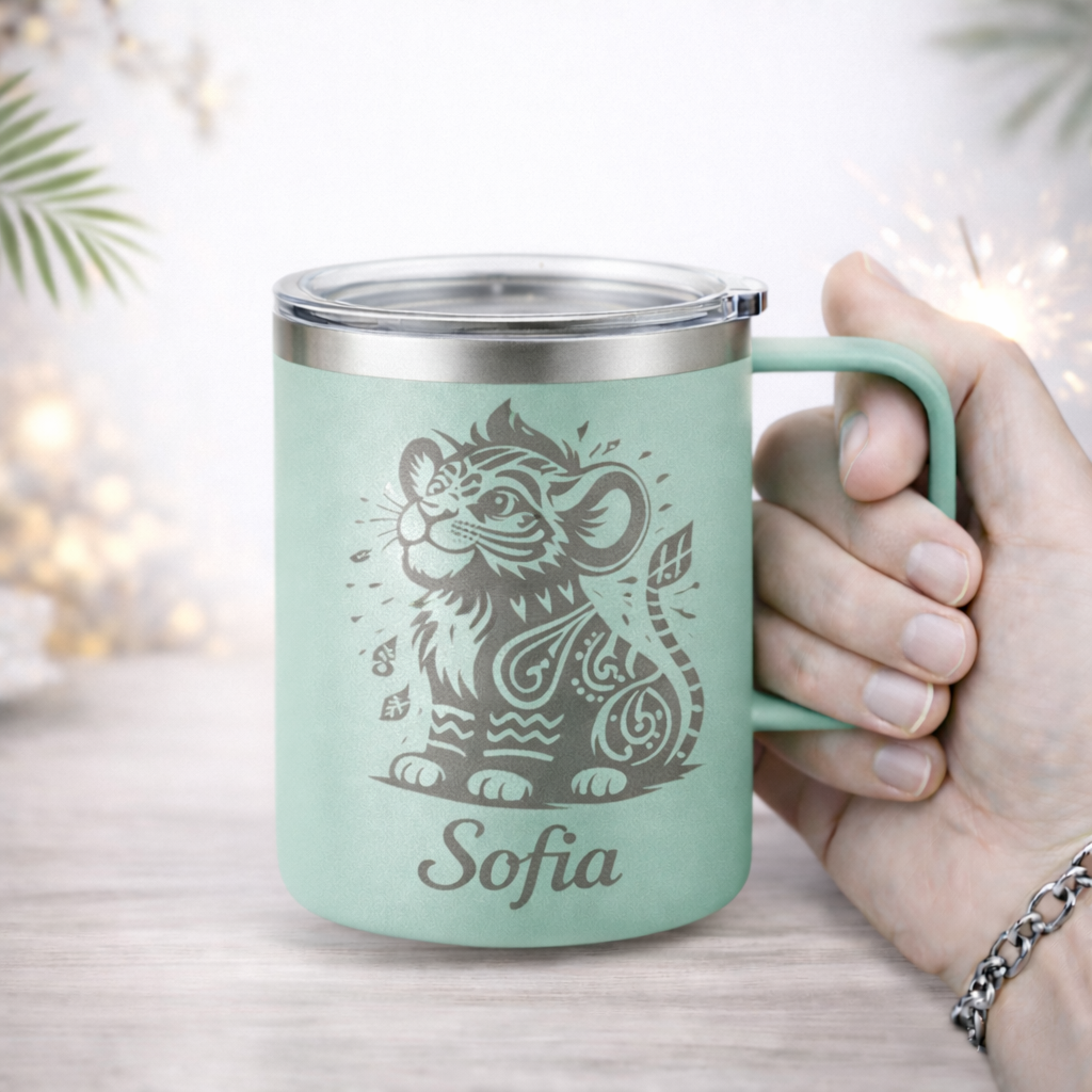 Vaso térmico 12oz con asa (agarre integrado), diseñado para quienes buscan comodidad, estilo y personalización real. Su acabado en color menta le da un look moderno y elegante, ideal para uso diario o regalo especial.