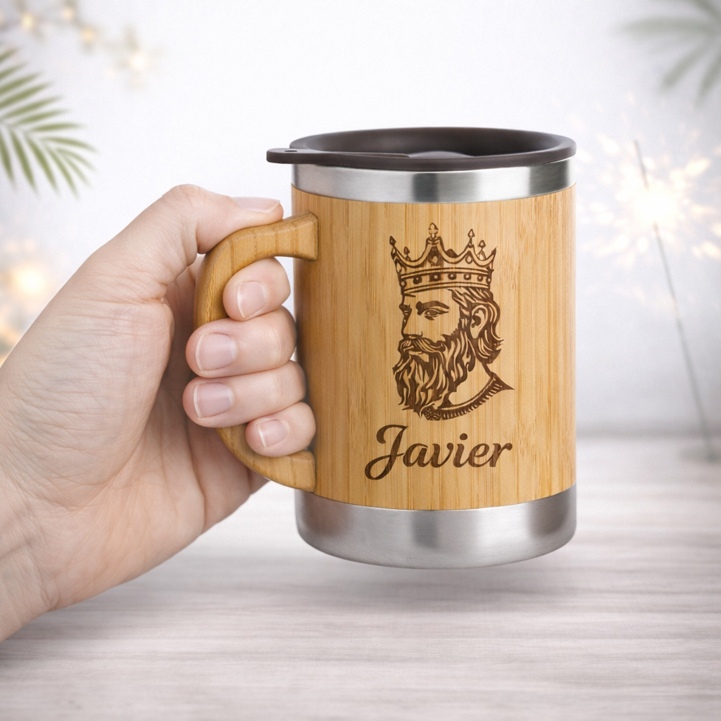 Vaso Térmico de Bambú Ecológico con Agarre 350 ml – Grabado Láser Personalizado