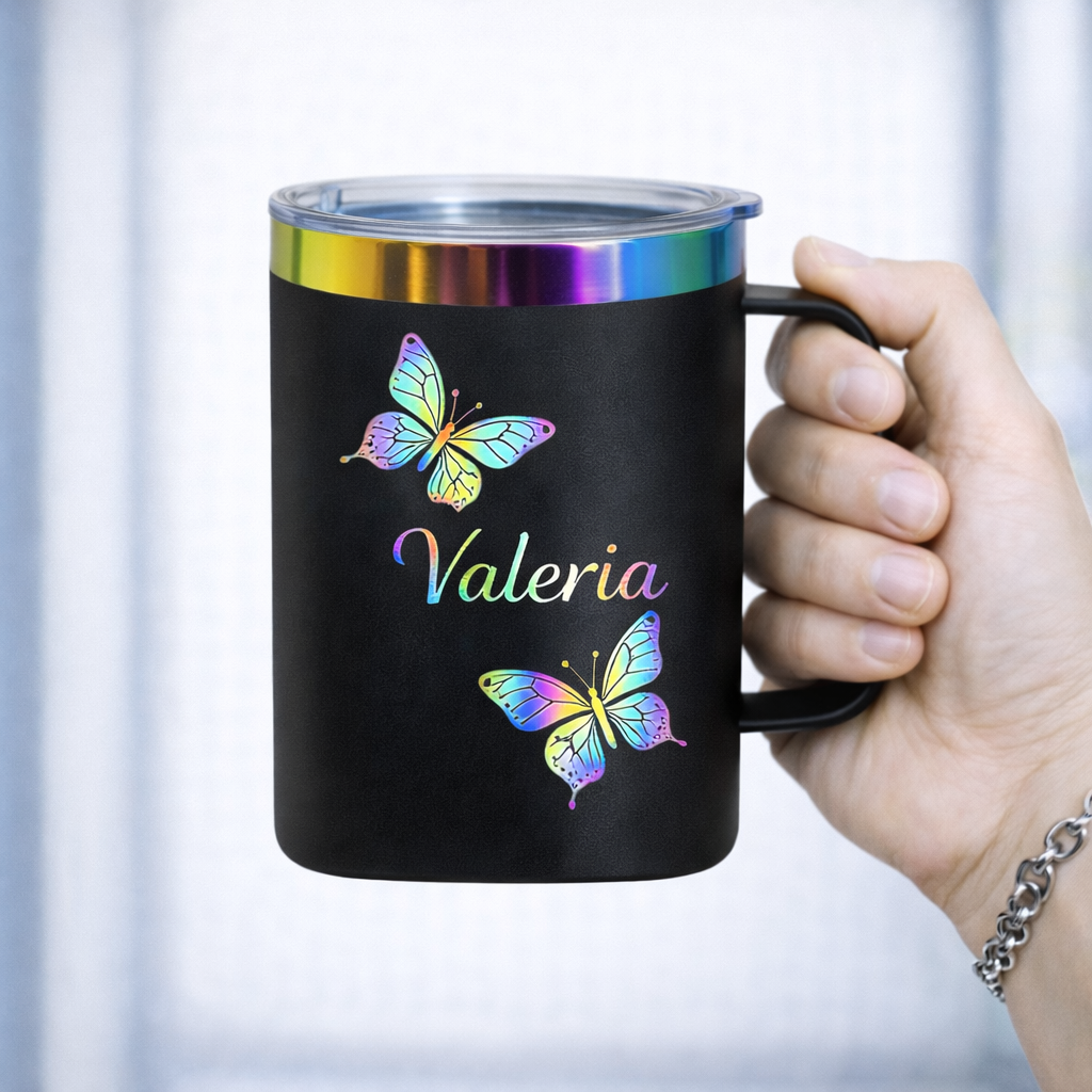 Vaso Térmico 12oz Negro Tornasol con Agarre | Grabado Láser Premium